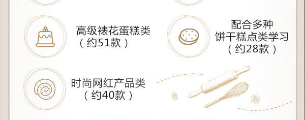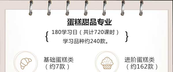 通过学习,使学生熟悉和掌握西式蛋糕师专业基础知识和专业技能知识,了解相关原料知识,并能灵活运用,无论创业还是就业都有强大的知识储备后盾。